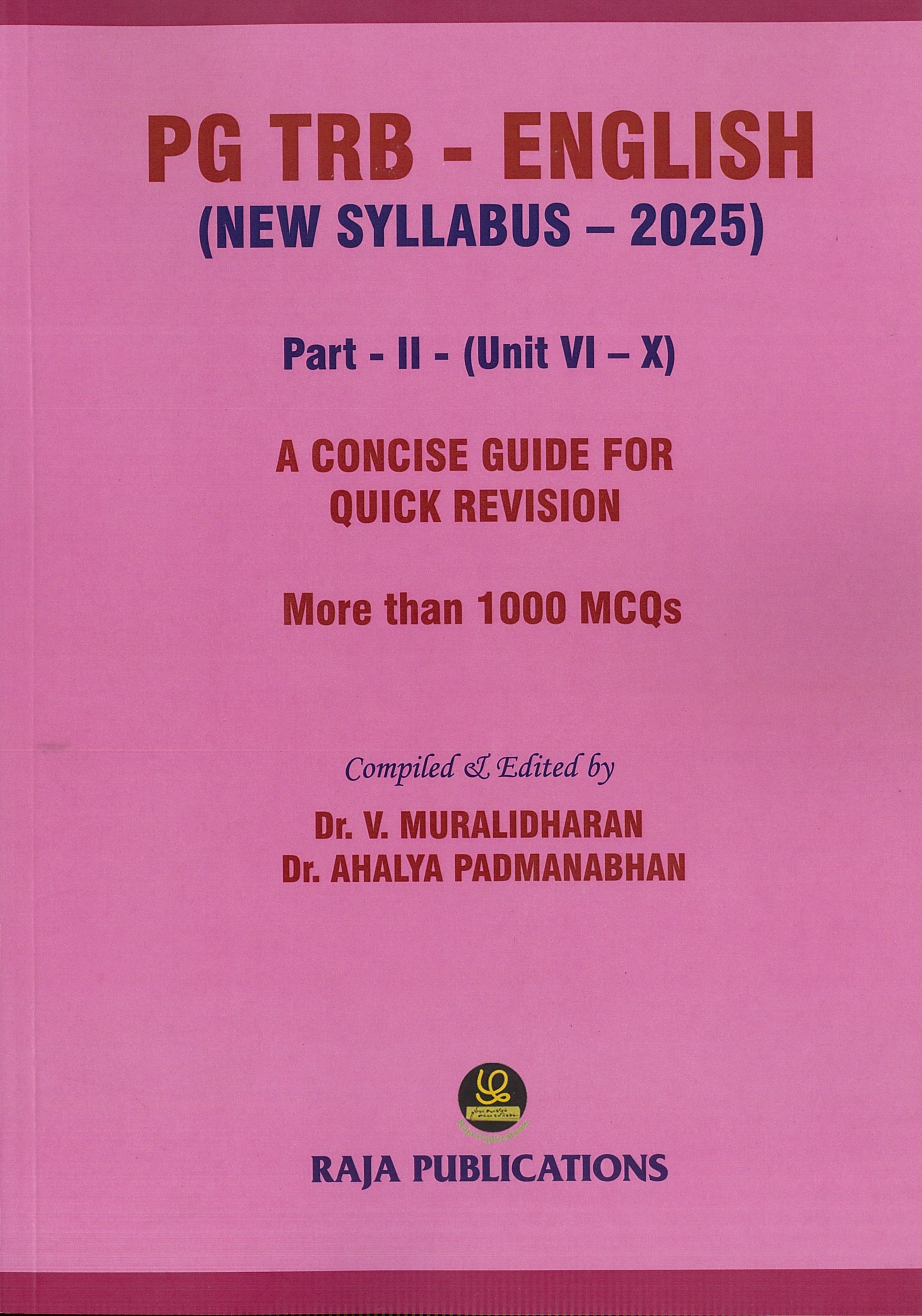 Author: Dr. V. MURALIDHARAN / Dr. AHALYA PADMANABHAN